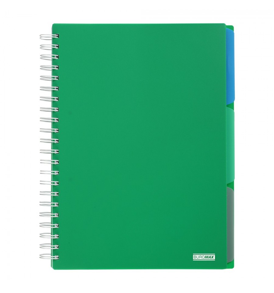 Зошит на пружині BRIGHT BM.24345912-04, А4, 120 арк, клітинка, 3 розділювачі, зелений