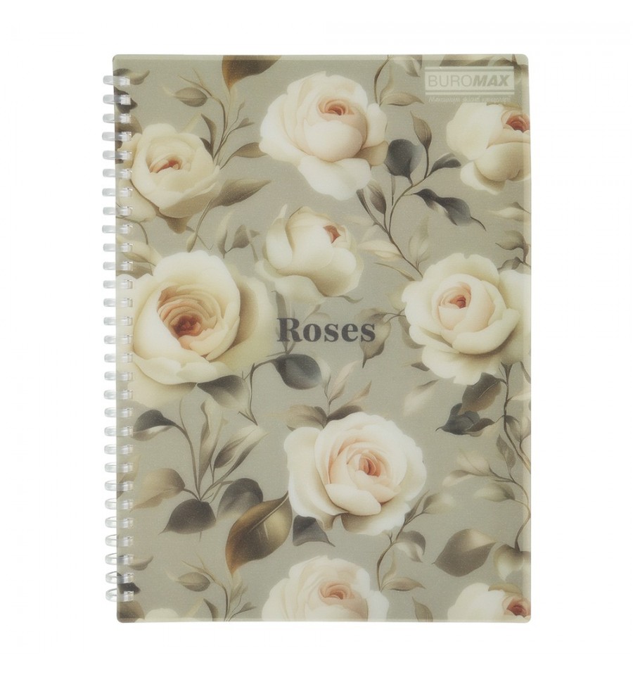 Зошит на пружині колекції ARABESKI від BUROMAX – гарний та стильний помічник, який підкреслить Вашу індивідуальність та стане незамінним другом у систематизації записів, ідей та думок. Його можна носити з собою і одразу робити важливі помітки. Ідеальне рішення як для офісу, так і для навчального закладу та дому! Обкладинка, виконана у вишуканому квітковому дизайні, неодмінно буде привертати увагу та надихати!формат В5 (розмір 190х260 мм) 80 аркушів обкладинка із щільного матового непрозорого пластику (товщина 600 мкм) - чудово захистить вміст зошита від заминання, намокання та інших механічних пошкоджень чи забруднень кріплення аркушів: силіконова вертикальна пружина (збоку), що дозволяє легко перегортати та загинати сторінки (все лягає ідеально), а також зручно писати на обох сторінках розвороту внутрішній блок: кремовий офсетний папір щільністю 70 г/м² лініювання: клітинка, виконане сірим кольором, оптимальним для сприйняття зором людини основний колір обкладинки: світло-сірийПридбайте інші канцтовари серії ARABESKI, з квітковими та пастельними дизайнами і зберіть власну унікальну колекцію, яка неодмінно підкреслить Ваш смак і обов'язково буде радувати погляд!