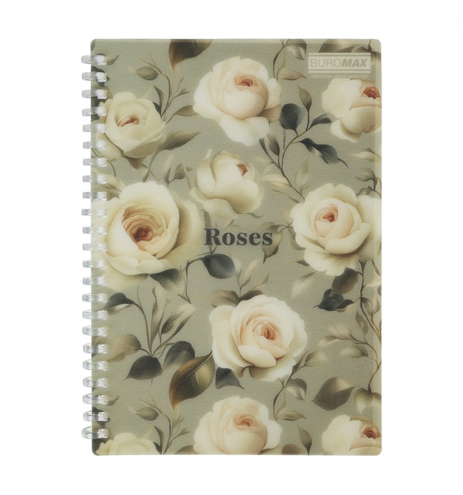 Зошит на пружині колекції ARABESKI від BUROMAX – гарний та стильний помічник, який підкреслить Вашу індивідуальність та стане незамінним другом у систематизації записів, ідей та думок. Його можна носити з собою і одразу робити важливі помітки. Ідеальне рішення як для офісу, так і для навчального закладу та дому! Обкладинка, виконана у вишуканому квітковому дизайні, неодмінно буде привертати увагу та надихати!формат А5 80 аркушів обкладинка із щільного матового непрозорого пластику (товщина 600 мкм) - чудово захистить вміст зошита від заминання, намокання та інших механічних пошкоджень чи забруднень кріплення аркушів: силіконова вертикальна пружина (збоку), що дозволяє легко перегортати та загинати сторінки (все лягає ідеально), а також зручно писати на обох сторінках розвороту внутрішній блок: кремовий офсетний папір щільністю 70 г/м² лініювання: клітинка, виконане сірим кольором, оптимальним для сприйняття зором людини основний колір обкладинки: світло-сірийПридбайте інші канцтовари серії ARABESKI, з квітковими та пастельними дизайнами і зберіть власну унікальну колекцію, яка неодмінно підкреслить Ваш смак і обов'язково буде радувати погляд!