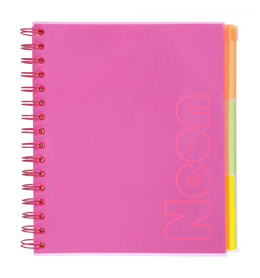 Зошит на пружині NEON від BUROMAX – зручний аксесуар-органайзер для ведення різноманітних записів, планів, конспектів, щоденників тощо. Наявність розділювачів допоможе ідентифікувати та систематизувати інформацію або вести різні записи в одному зошиті. Велику містку кишеню на Zip-блискавці можна використовувати як вбудований пенал, зберігати в ньому різні дрібні записки, картки та приладдя для письма. Такий зошит стане в нагоді працівникам різних сфер діяльності, офісним співробітникам, студентам та школярам, ​​а також для використання в побуті.120 аркушів формат ≈ В5 (розмір блоку 170х205 мм) гнучка обкладинка з прозорого глянсового тонованого PVC-пластику (товщина 500 мкм), захистить записи від впливу вологи та бруду внутрішній блок із офсетного білого паперу щільністю 70 г/м² кріплення: металева вертикальна пружина (збоку), що дозволяє легко перевертати аркуші та зручно писати на обох сторонах розвороту лініювання: клітинка, двостороннє, з вузькою рамкою по периметру, виконане м'яким сірим кольором, приємним для сприйняття людиною блок має 3 різнокольорові пластикові розділювачі розміром 182х205 мм задня обкладинка зошита виконана у вигляді глибокої кишені, що закривається за допомогою Zip-блискавки аркуші блоку мають перфорацію для підшивки у швидкозшивач колір неоновий рожевий