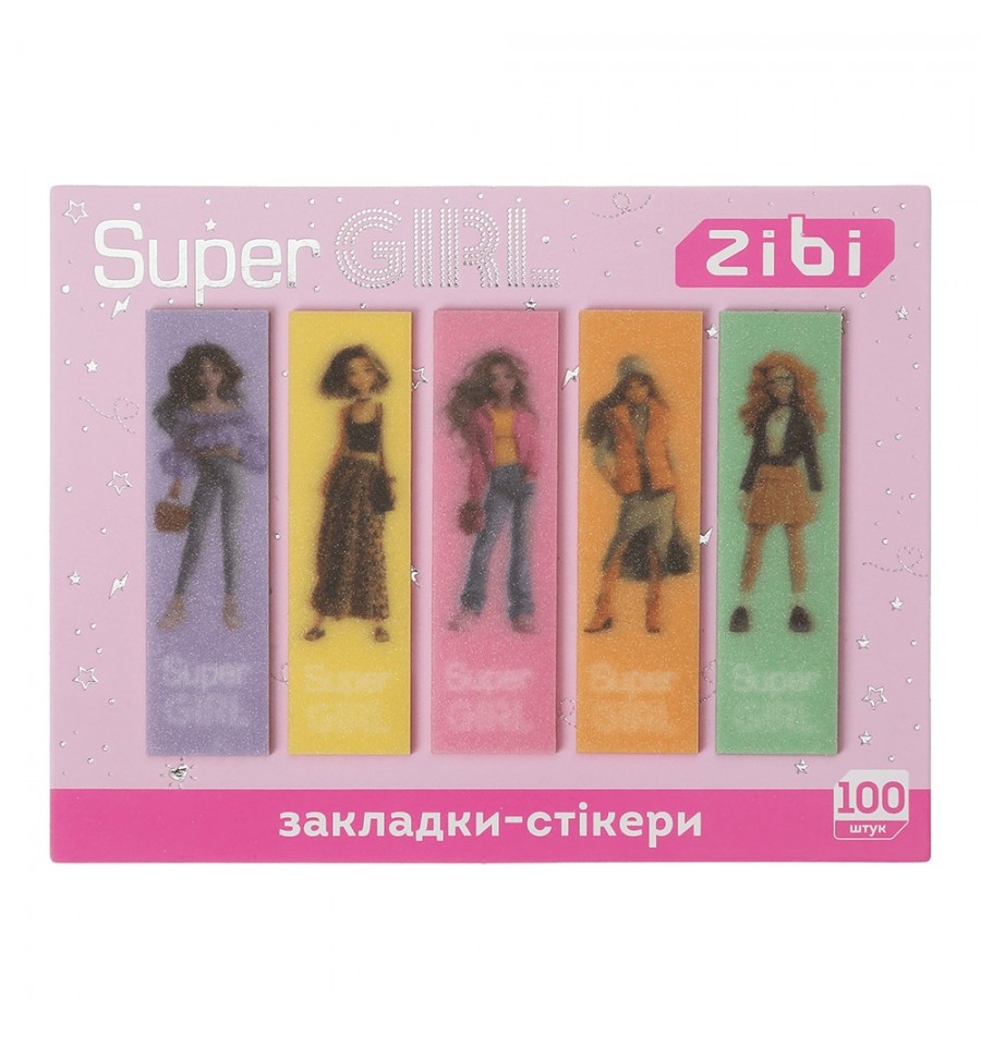 Новий Закладки блискучі SUPER GIRL ZB.15350, з клейким шаром, 55x15 мм, 5 диз. по 20 арк.