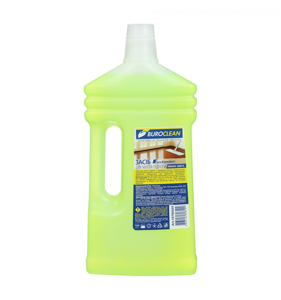 Засіб для миття підлоги з ароматом лимону від BUROCLEAN - універсальний засіб для миття підлоги та інших поверхонь з будь-яким твердим покриттям. Призначений для щоденного прибирання.Дбайливо очищає від пилу, жиру та інших забруднень Має приємний аромат Усуває неприємні запахи Не залишає розводів на поверхні Підходить для різноманітних твердих покриттів: кераміка, лінолеум, ламінат, паркет, камінь, пластик тощо Ефективний навіть у холодній воді Об’єм: 1000 мл Колір: прозора рідина жовтого кольору Склад: вода очищена, 5-15% аніонні ПАР, <5% неіоногенні ПАР, <5%, АБСК, віддушка, барвник, консервант.